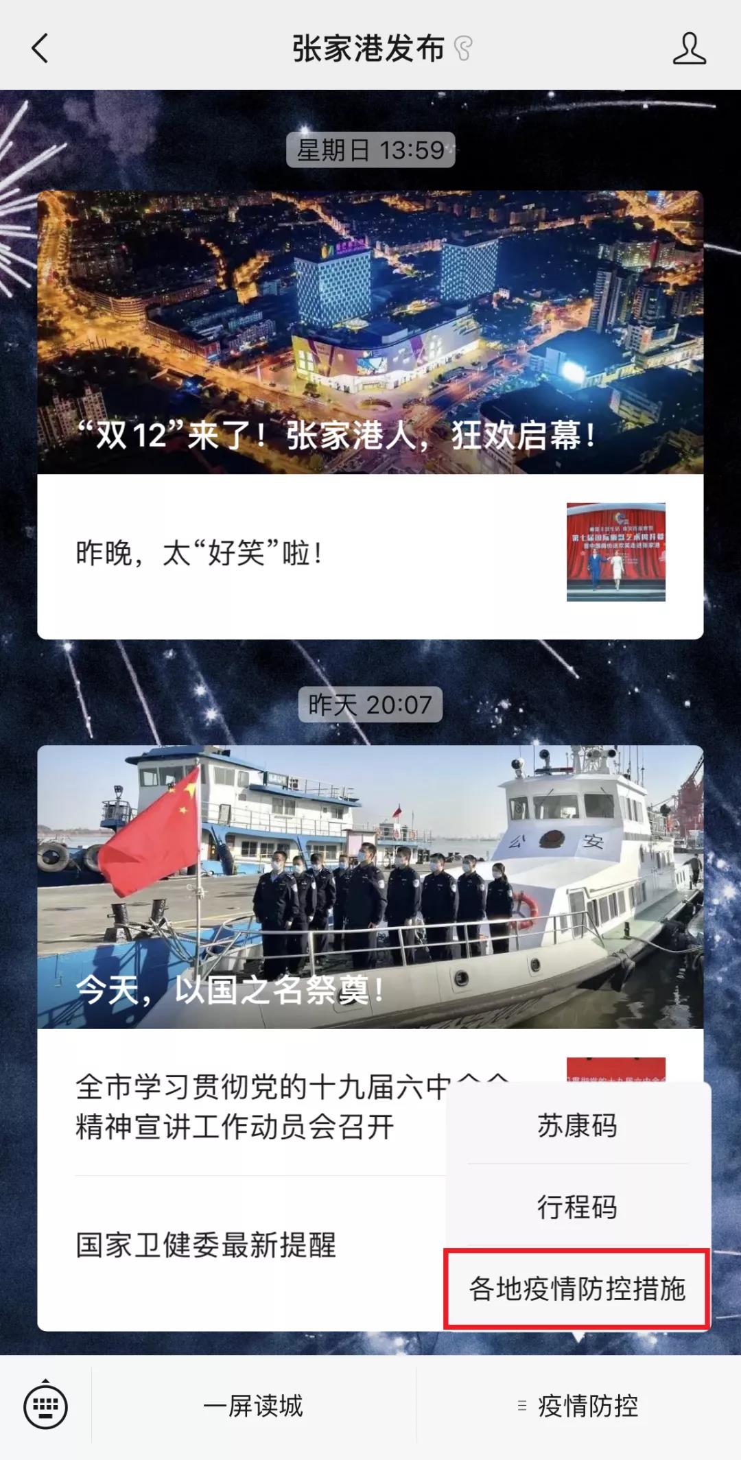 最近要出門,不知道出發(fā)地、目的地都有什么疫情防控政策措施?別著急,兩步教你查詢!“張家港發(fā)布”微信菜單欄打開“國(guó)務(wù)院客戶端”小程序,進(jìn)入后搜索“各地疫情防控政策措施”,即可搜索查詢相關(guān)信息!